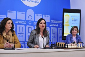 La alcaldesa, Patricia Cavada, ha presentado hoy junto a la diputada provincial de Igualdad, Juventud y Educación, Isabel Moya, y la integrante de la Peña Ajedrecística Isleña (PAI), Noelia Guerrero, el I Open Femenino de Ajedrez 'Bahía de Cádiz', que se celebrará el próximo sábado 8 de diciembre en San Fernando, con el objetivo, entre otros, de aumentar la participación de niñas y mujeres en este deporte-ciencia que representa en la provincia gaditana el 8 por ciento de las licencias federativas.