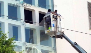 Con las pruebas del Tren Tranvía se cayeron cristales del Centro de Congresos.