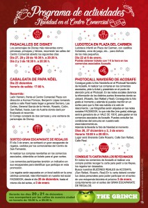 La plaza del Carmen acogerá la Ludoteca desde el 22 de diciembre al 6 de enero, con castillos hinchables, zona de juego, etc. Los días 21 y 22 se incorporará como atractivo en las calles El Grinch, el famoso personaje ‘antinavideño’ que trata de robar la Navidad y que de 18:30 a 20:30 horas hará ‘sus travesuras’ por el centro comercial.