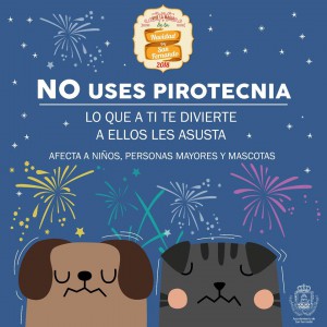 ·En estas fiestas no uses pirotecnia. Lo que a ti te divierte a ellos les asusta. Afecta a niños y niñas, personas y mascotas" es el mensaje que lanza el Ayuntamiento para frenar las explosiones de los petardos tan común en las fiestas de Nochebuena y fin de año, y en esta ocasión, los protagonistas del cartel son un perro y un gato .