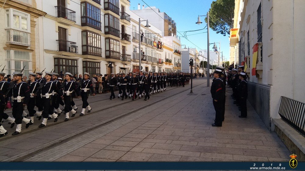 El Almirante de la Flota, Manuel Garat Caramé, en representación de Su Majestad el Rey, ha sido el encargado de presidir el acto que consistió en una revista de la Fuerza presente, alocución del almirante en el Salón del Trono y desfile militar por la calle Real. A la ceremonia asistieron numerosas autoridades civiles y militares de la Bahía de Cádiz.