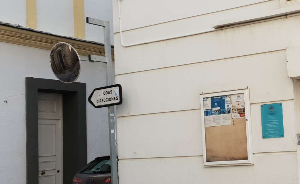 Desde hace varios días, un espejo importante a la hora de evitar accidentes de tráfico, no cumple su función porque algún camión le dio al recular de tramo de la calle Saturnino Motojo que no tiene salida a la calle Real por existir una parada del tren tranvía.