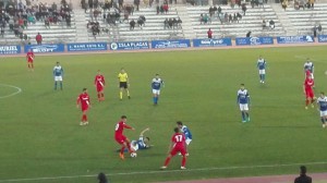 El equipo cañaílla salió al césped con las novedades de Manu Ramírez y Antonio Oca, además de la aparición de Nano Cavilla en el lateral zurdo. El guion del partido pudo cambiar a los dos minutos, cuando a los dos minutos, el exazulino Chris Ramos pilló la espalda a sus antiguos compañeros y encaró a Rubén Gálvez en el uno contra uno. También su compañero Antonio Casas gozó de una oportunidad de este tipo, pero no hicieron portería.