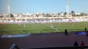 Los cañaíllas plasmaron sobre el terreno de juego el guion previsto y soñado. Empezar mordiendo y encerrando a un rival confuso por la intensidad del viento y de un bloque isleño que no le permitía el más mínimo respiro. No obstante, fue el Murcia el que tuvo la primera acción clara del partido a balón parado: en el segundo minuto de juego, Miguel Díaz cabeceó al palo.