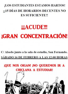 “Por todos estos despropósitos y porque estamos cansados de que se rían de nosotros a la cara, hacemos un llamamiento a la concentración del próximo sábado 16 de febrero a las 12:00 horas en la calle Alsedo junto a la sala de estudio”.