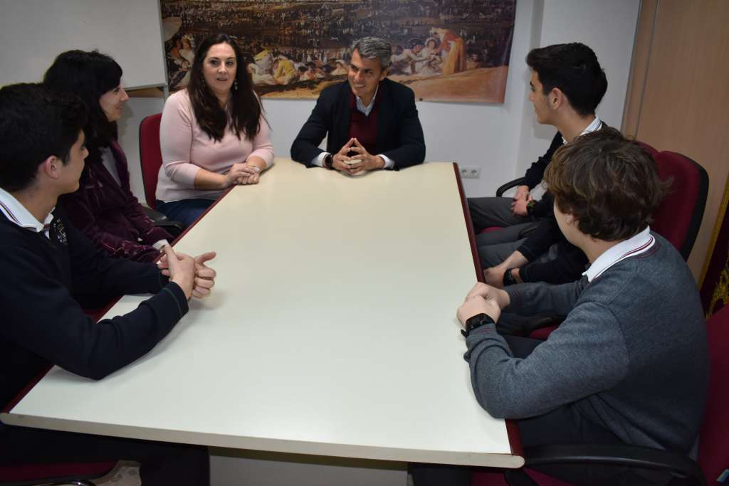 El primer teniente de alcaldesa y delegado general del Área Municipal de Promoción de la Ciudad, Fran Romero, y la delegada específica de Espacios Culturales, Begoña Castro, han recibido al equipo de la Compañía de María que el pasado 15 de febrero ganó El III Torneo Provincial de Debate San Felipe Neri.