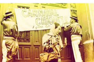 Así nació el carnaval chiquito, para los más jartibles. La pancarta que aparece en la imagen, la llevaron estos chirigoteros, que durante años sirvió como emblema del carnaval chiquito.