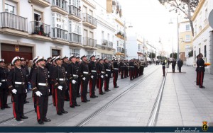 El acto comenzará a las 19:33 horas con el desfile de una Sección de honores y gastadores compuesta por 30 Infantes de Marina al mando de un Oficial Jefe de Sección y una punta de banda del Tercio Sur de Infantería de Marina. La Fuerza desfilará desde la calle Arias de Miranda en dirección a la calle Real, hasta ocupar sus puestos para la ceremonia.