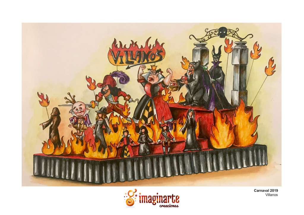 Seguidamente desfilará un segundo pasacalles “Galáctica”, que dará paso a las carrozas “El Primer Hombre” y “Los Increíbles”. El tercer pasacalles “Los Villanos” dará paso a la carroza “Villanos”, la carroza “Hércules”, que llevará al Dios Melkart acompañado por la chirigota infantil “La cantera”, y las carrozas “Pitufos” y “Donald y Daisy”. El cortejo lo cerrará la carroza con la corte de salineras de 2018 que se han transformado en colombinas durante la fiesta de Don Carnal.