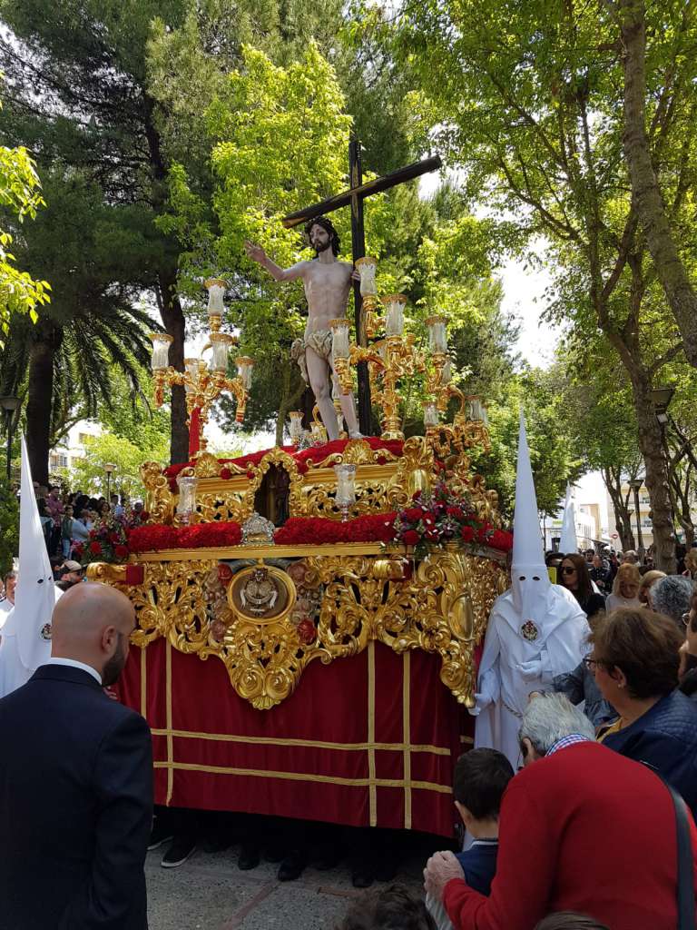 La procesión de Cristo Resucitado ha cerrado la Semana Santa 2019 de San Fernando, saliendo a las 10 de la mañana para recorrer las calles General García de la Herrán, Antonio López, González Hontoria, Rosario, Plaza de la Iglesia, Real, Estación de Penitencia ante el Santísimo (Iglesia Mayor), CARRERA OFICIAL, Isaac Peral, General Valdés, Saturnino Montojo, Calderón de la Barca, Isaac Peral, Arenal, Parque Almirante Laulhé (subida interior), Paseo Virgen del Buen Fin, Parque Almirante Laulhé (subida interior), General García de la Herrán y a su Templo.