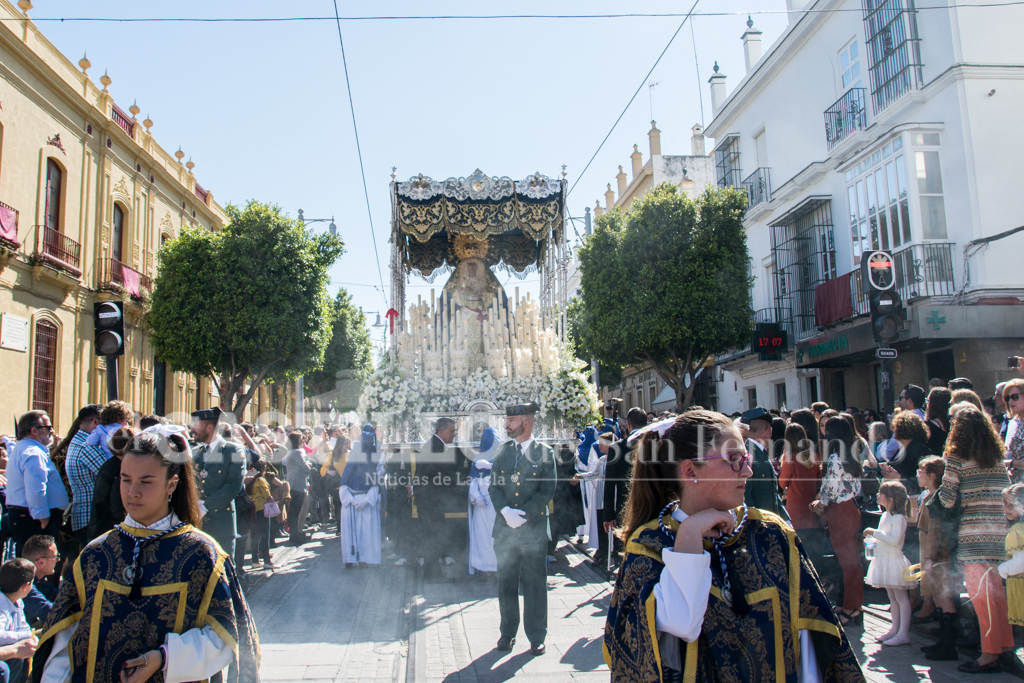 A las 17,15 horas salía desde el barrio de la Ardila, la hermandad de Humildad y Paciencia, arropada por todo su barrio, que lo acompaña por todo su recorrido, y a los sones de la A. M. Los Remedios de Chiclana, estrenaba una nueva distribución de las figuras de su paso de misterio, para dar un mayor realce y visibilidad a este, le seguía la Virgen de las Penas acompañada de la Banda Agripino Lozano, hermandad que regresa a su barrio pasada la 1,30 de la madrugada.