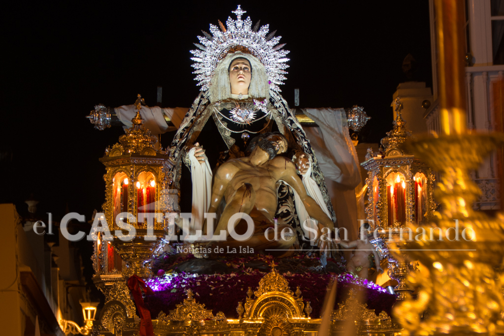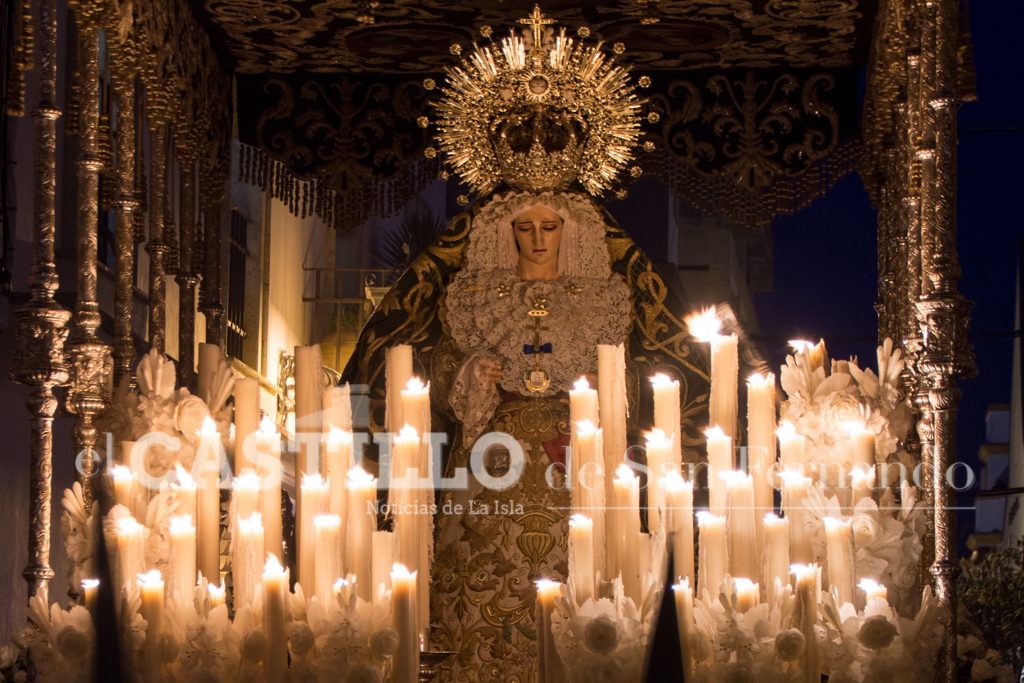 La subida de la calle Comedias fue de nuevo muy esperada y llena de gente. El paso estrenó dos capillas laterales realizadas en el taller de los Hermanos Delgado y el corazón que llevaba la Virgen en el pecho.