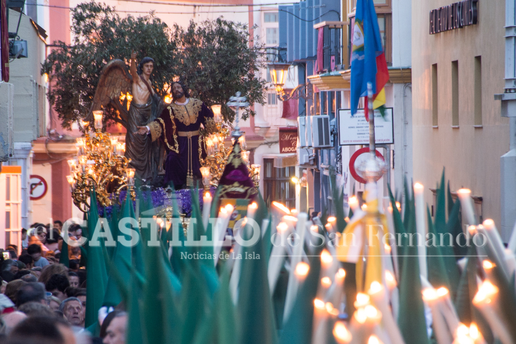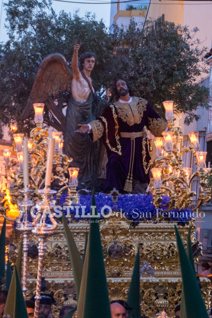 Desde la Pastora, la cofradía del Huerto salía y abría las puertas del templo por segundo día consecutivo. El paso de misterio, con un monte de lirios morados, iba acompañado por la agrupación Fuensanta de Morón y portado por la JCC. El pequeño paso de palio de la Virgen de Gracia y Esperanza procesionó un año más con el recuerdo a Spínola y también la medalla de la ciudad en el pecho de la Virgen de Gracia y Esperanza Coronada, que procesionó a los sones de la banda Fernando Guerrero de Los Palacios.