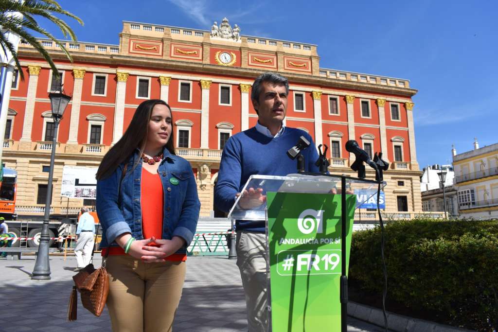 El candidato a la Alcaldía de San Fernando por AxSí, Fran Romero, y la responsable en Juventud y número ocho de la candidatura que él lidera, Marta Vidal, han presentado esta mañana a la frente al Ayuntamiento las principales medidas en materia de participación ciudadana y nuevas tecnologías incluidas en el proyecto de ciudad con el que AxSí concurre a las próximas Elecciones Municipales.