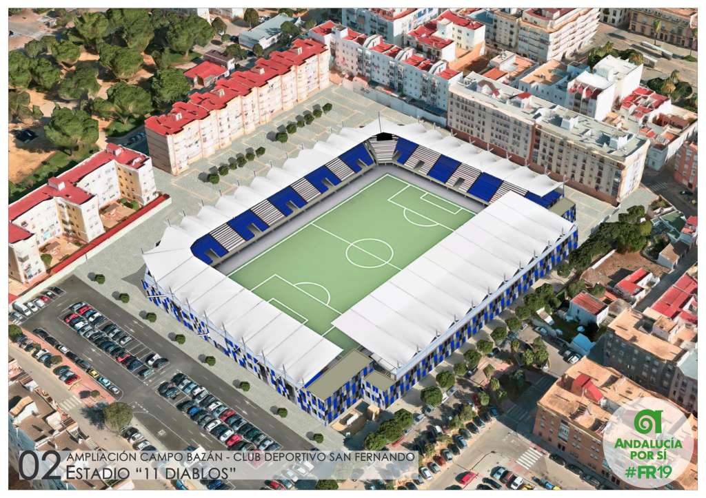 El candidato a la Alcaldía de San Fernando por AxSí, Fran Romero, ha presentado otra de las iniciativas incluidas en el proyecto de ciudad con el que Andalucía por Sí concurrirá a los próximos comicios municipales. Se trata de la construcción de un nuevo estadio de fútbol que el San Fernando CD defenderá como local y que nacerá de la ampliación del actual Campo Municipal de Fútbol de la Bazán. Este estadio, explica Romero, contará con capacidad para 10.000 espectadores, y su coste está valorado en torno a los 4,3 millones de euros.