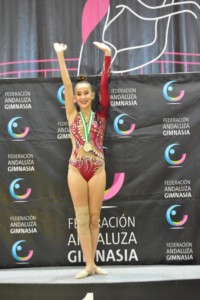 Lucía de Cozar García, Categoría Junior con Cuerda, ha realizado un magnifico montaje que le ha servido para subir a lo más alto del pódium y quedar Campeona de Andalucía de la especialidad.