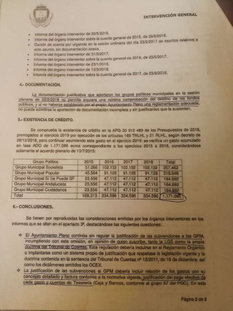 Es por todo esto por lo que Solo San Fernando solicita un compromiso de aprobación de esta medida en el pleno tras las elecciones municipales, una medida que, como se aprecia en el documento adjunto, ha sido apoyada por el interventor del Ayuntamiento de San Fernando quien también repara en la necesidad de una debida justificación de las cuentas.