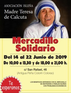 hoy 14 de junio a las 10:00 horas ha dado comienzo el ‘III Mercadillo Solidario de Verano’ en la calle San Rafael 46, organizado por Asociación Isleña Madre Teresa de Calcuta
