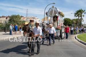 La Hermandad de Nuestra Señora del Rocío de San Fernando ha celebrado a las 9:30 horas su anual Misa de Romeros y a su fin se ha iniciado la salida para el Camino, estrenando itinerario de despedida de la ciudad, por Plaza de la Sagrada Familia, Eume, Arapiles, Marqués de la Ensenada, Avda. Carlos III, Paseo Gral. Lobo, Dr. Erostarbe, Viriato, San Rafael, Colón, Rosario, Murillo, La Herrán, Real, Pza. de la Iglesia, Real, Pza. del Carmen, Real, Benjamín López, Parque de Sacramento donde se realizó el rengue de mediodía.