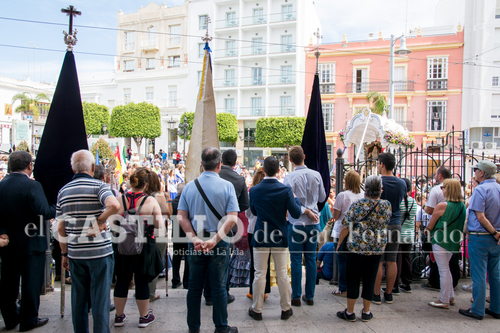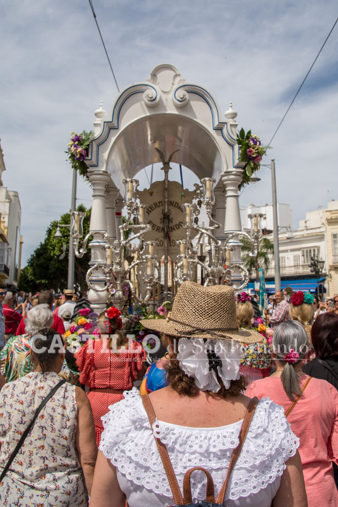La Hermandad de Nuestra Señora del Rocío de San Fernando ha celebrado a las 9:30 horas su anual Misa de Romeros y a su fin se ha iniciado la salida para el Camino, estrenando itinerario de despedida de la ciudad, por Plaza de la Sagrada Familia, Eume, Arapiles, Marqués de la Ensenada, Avda. Carlos III, Paseo Gral. Lobo, Dr. Erostarbe, Viriato, San Rafael, Colón, Rosario, Murillo, La Herrán, Real, Pza. de la Iglesia, Real, Pza. del Carmen, Real, Benjamín López, Parque de Sacramento donde se realizó el rengue de mediodía.
