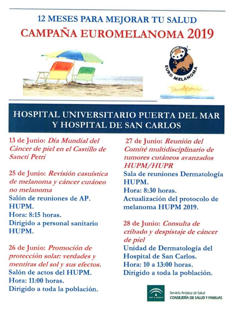 Varias ctividades se han previsto en los Hospitales Puerta del Mar de Cádiz y San Carlos de San Fernando con motivo de la campaña europea de prevención del cáncer de piel, que se celebra cada año, y que en esta ocasión se enmarca en el programa '12 Meses para Mejorar tu Salud'.