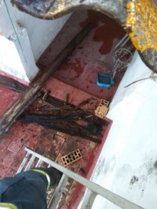 Una vez sofocado se sanea la zona afectada y se precinta la subida a la cubierta. No se observan después indicadores de daños mayores estructurales por lo que se aconseja a los dos ocupantes de la vivienda que no usen las estancias afectadas debido a dichas deficiencias.