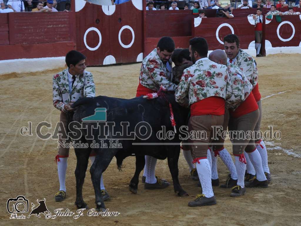 Con menos de media plaza en los tendidos se lidiaron dos novillos de Prieto de la Cal justitos de presentación y complicados para la lidia a caballo, los Forcados de Arronches (por primera vez en La Isla), y cuatro de Soto de la fuente con volumen pero con poca cornamenta, faltos de raza y de juego deslucido para la lidia a pie. Al quinto de la tarde se le dió incomprensiblemente la vuelta al ruedo.