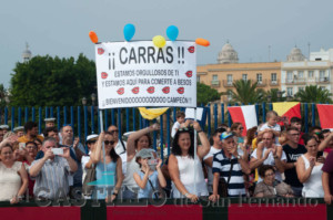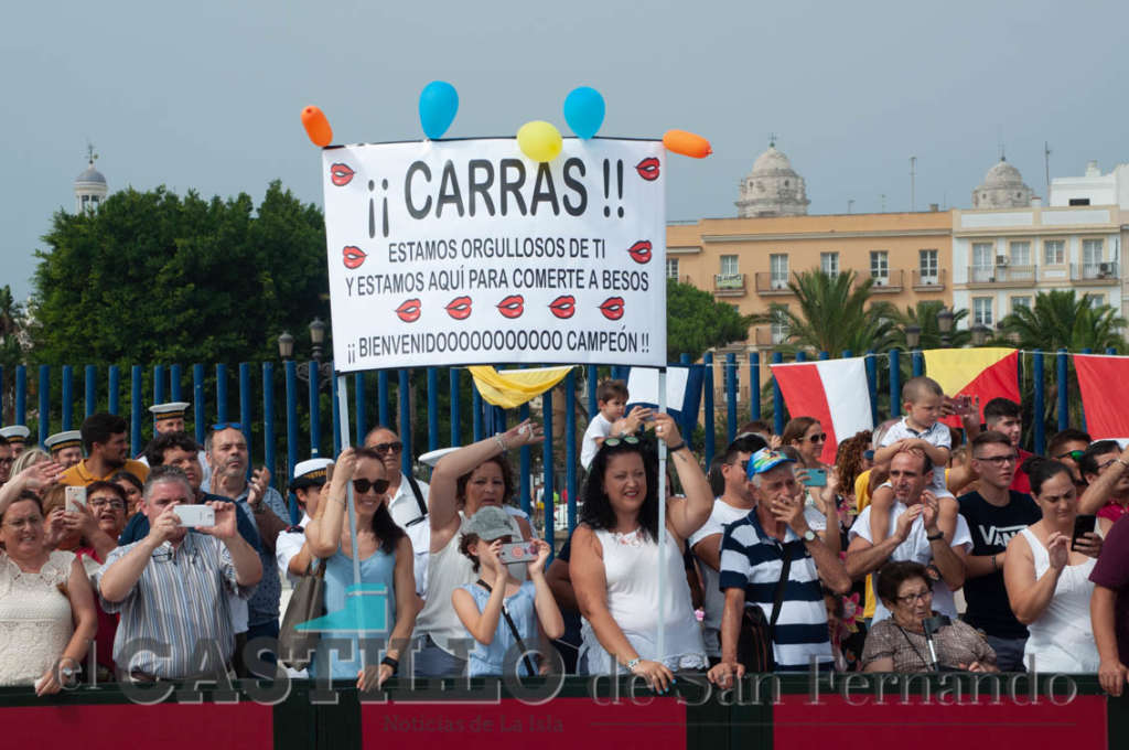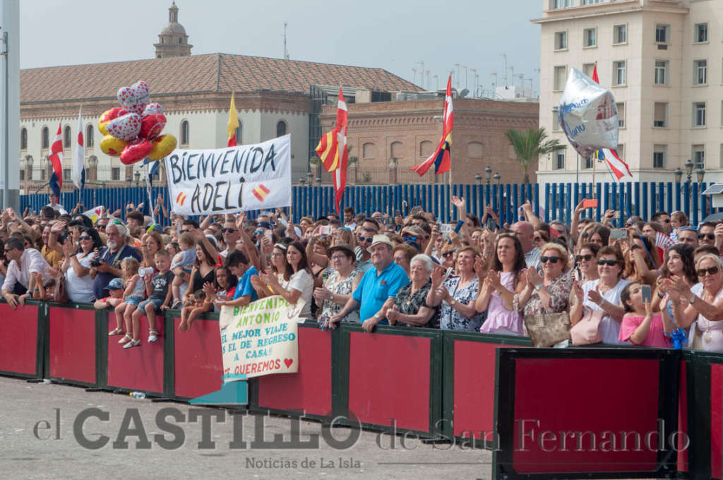 Los sentimientos y muestras de cariño se apoderaron del muelle gaditano con pancartas, globos, gritos, abrazos, lágrimas, besos y hasta un anillo de compromiso.