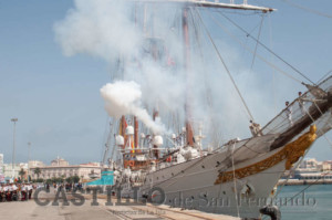 Desde las 9:30 horas de la mañana la Unidad de Música del Tercio Sur de Infantería de Marina San Fernando dirigida por el comandante Juan Máximo Rodríguez Peinado, acompañó al buque escuela con pasodobles y marchas militares.