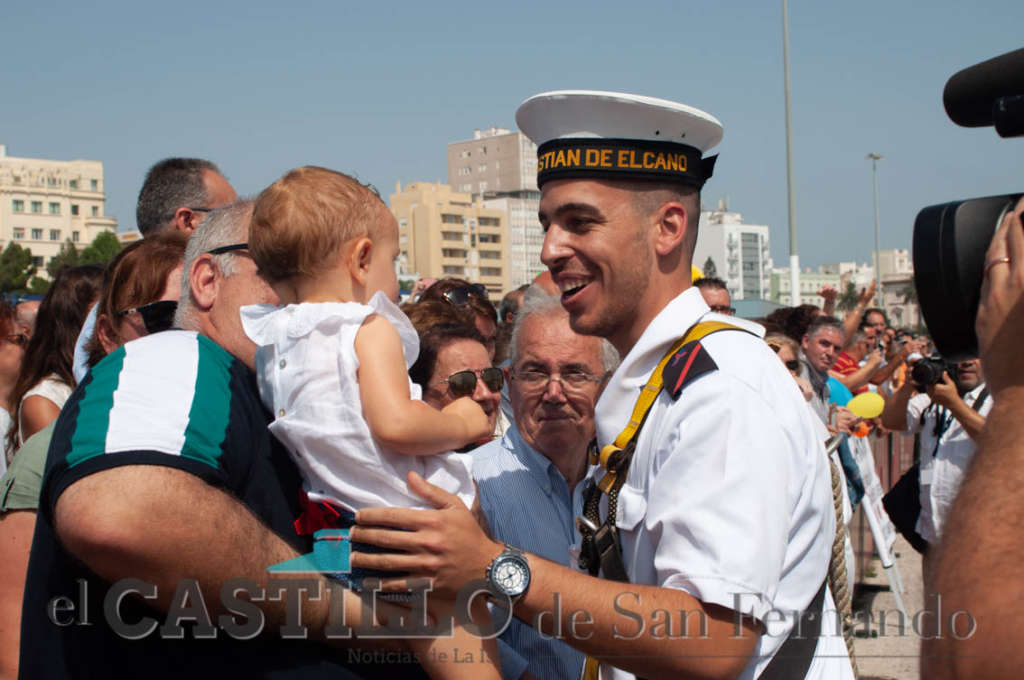 El bergantín-goleta "Elcano” atraccó en su noray, como ya es tradición, a las 11:30 horas, en el muelle ‘Ciudad de Cádiz’ del puerto gaditano, donde su tripulación tras seis meses navegado por el continente americano y el norte de Europa les esperan sus familiares y amigos.