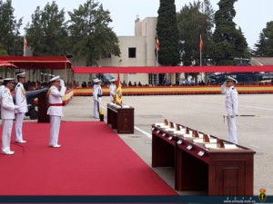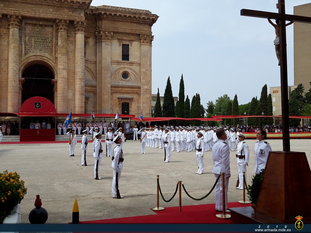 Tras recibir los honores de Ordenanza y pasar revista al batallón de alumnos, el AJEMA entregó los despachos de sargento y las condecoraciones a los números uno de la promoción: Sargento Vanessa Antuña Fernández del Cuerpo General de la Armada, y Sargento Jesús Alba Mejías del Cuerpo de Infantería de Marina.