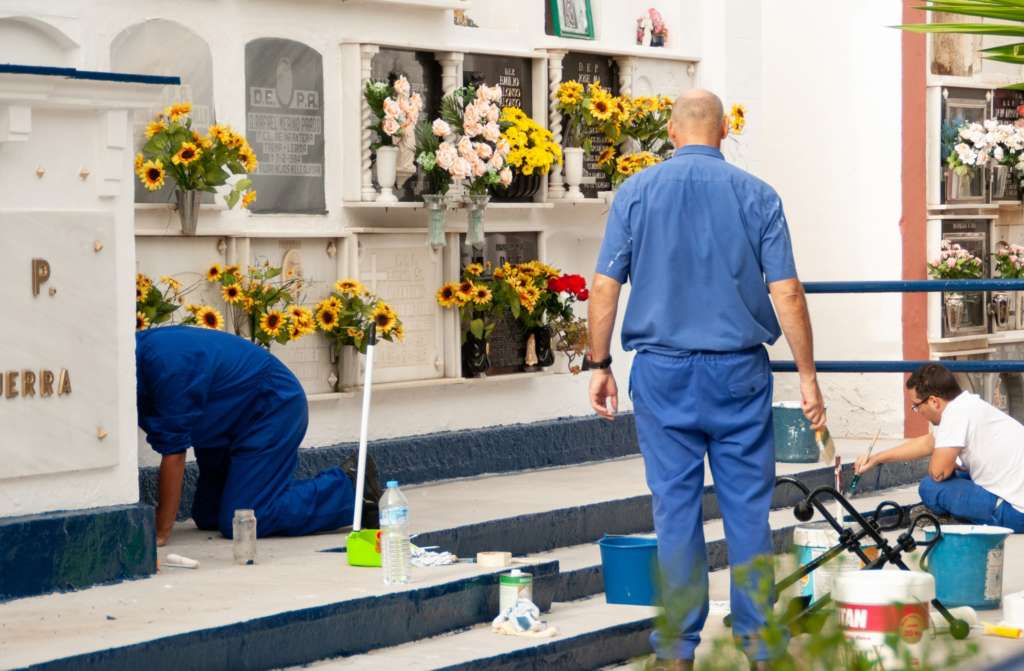 Desde la concejalía de Infraestructuras se han venido realizando estos días una serie de actuaciones encaminadas a la conservación y mejora del camposanto, con labores de pintado de la fachada y el interior, arreglo de ventanas, limpieza intensiva, acondicionamiento de jardines y adecentado de nichos (principalmente los que están abiertos) con el objetivo de mantener el cementerio en perfectas condiciones para afrontar unos días en los que recibe una gran cantidad de personas.