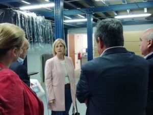 Las candidatas al Congreso y el Senado del Partido Popular (PP) por la provincia de Cádiz, María José García Pelayo y María José de Alba, junto al presidente de la formación isleña, José Loaiza, han visitado esta mañana las instalaciones que la empresa El Siglo, dedicada a la fabricación de efectos militares, tiene en la localidad.