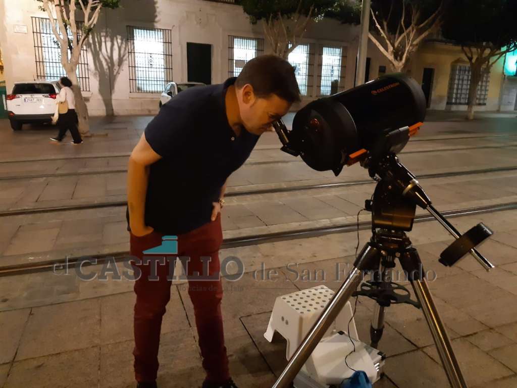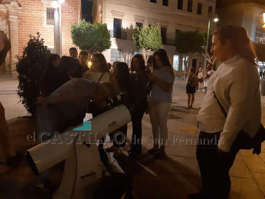 Anoche en la Plaza Iglesia la Agrupación Astronómica de San Fernando instaló varios telescopios con motivo del Día Internacional de la Observación de la Luna.