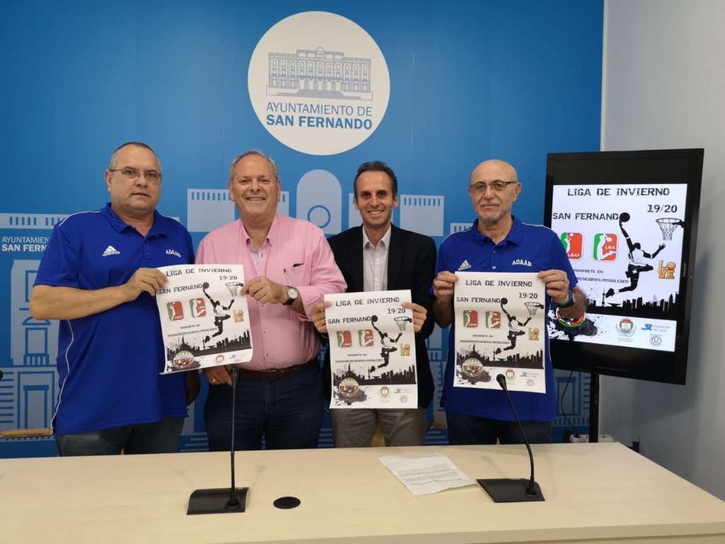 Esta semana se ha presentado el cartel de la liga amateur de inverno de la Asociación Deportiva de Árbitros y Auxiliares de Baloncesto (ADAAB). Al acto han acudido el concejal de Infraestructuras y Espacios Deportivos, Antonio Rojas; el concejal de Actividades y Desarrollo del Deporte, Francisco José Posada; el presidente de ADAAB, Luis Fernández; y su presidente de honor, Sebastián Rodríguez.