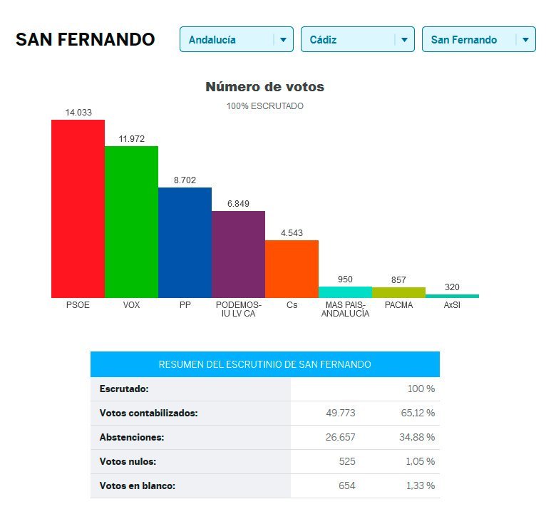 La secretaria general también se ha felicitado de que en San Fernando la participación en las elecciones siga manteniéndose en una cifra estable (solo rompió esa tendencia y fue más alta en las pasadas elecciones de abril). Además, ha señalado que la participación en la localidad (65,12%) ha estado por encima de la media provincial (63,91%).