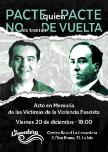 En la línea del acto aplazado, La Levantera declara que “pacte quien pacte tras las elecciones generales, ningún partido traerá de vuelta al pueblo -porque tampoco lo han hecho antes- la memoria de estas víctimas del fascismo.