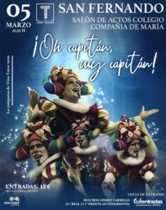 San Fernando el próximo sábado 5 de marzo en el Slón de Actos del Colegio Compañía de María acoge sin duda una de las actuaciones más esperadas de este carnaval.