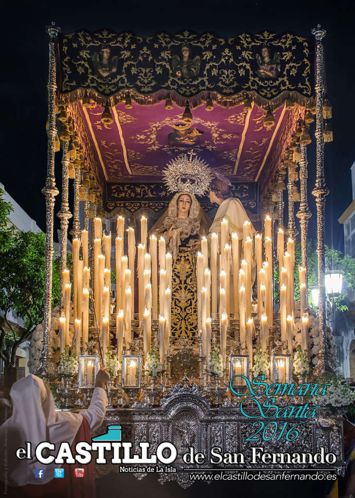 En 2016, el primer cartel estuvo dedicado a la Virgen de la Salud de la Hermandad del Ecce Homo, fotografiada en la isleña calle Ancha. Presentado por el cofrade Luis de Celis Sirviente.