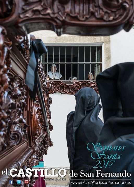 En 2017 un detalle del paso del Cristo de la Hermandad de Desamparados junto a una de las ventanas del Convento Nuestra Señora del Rosario con las cuatro Madres Clarisas Capuchinas pertenecientes a la Congregación que llevaba asentada en San Fernando desde hacía 127 años. Fotografía que pasará a la historia por no poder volver a fotografiar tan bella estampa. Presentado por el cofrade Antonio José Martínez Cortés.