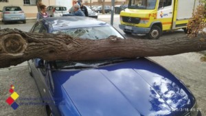 Algeciras ha tenido actuaciones durante la mañana, 9 en total. Destacar la caída de un árbol sobre un coche en calle Robles que bomberos ha tenido que desbrozar y la caída de otro árbol sobre el cerramiento de una vivienda que también han tenido que sanear.