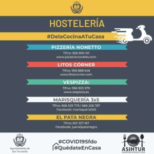 Los establecimientos hosteleros miembros de Asithur que actualmente mantienen su actividad gracias al servicio a domicilio son; Pizzeria Nonetto, Lito's Córner, Vespizza, Marisquería 3x5 y Pata Negra.