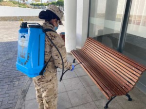 El Tercio de Levante junto con personal de apoyo de diversas unidades de la Armada realizó trabajos de desinfección exterior en el albergue Casa San José Coto Dorda, estación RENFE, y centros de servicios sociales la Milagrosa y las Graduadas, todos en Cartagena.