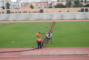 El Ayuntamiento inicia este lunes día 25 de mayo los trabajos de resiembra del césped del Estado de Bahía Sur dentro de las tareas ya previstas para la regeneración del terreno de juego.