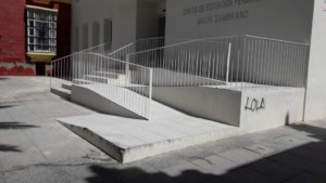 Concretamente, Malu del Río señala a la rampa construida para salvar las escaleras de entrada al centro, un acceso que presenta notables fallos de seguridad para su utilización por parte de personas con movilidad reducida.