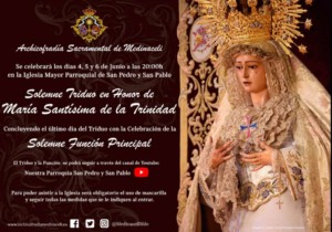 La Archicofradía Sacramental de Medinaceli celebrará en la Iglesia Mayor Parroquial de San Pedro y San Pablo, el Solemne Triduo en Honor y Gloria de su Titular, María Santísima de la Trinidad.