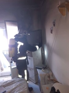Los bomberos sacaron al exterior el mueble y la televisión para terminar de extinguir y por consiguiente desconectar la corriente eléctrica ventilando con turboventilador.