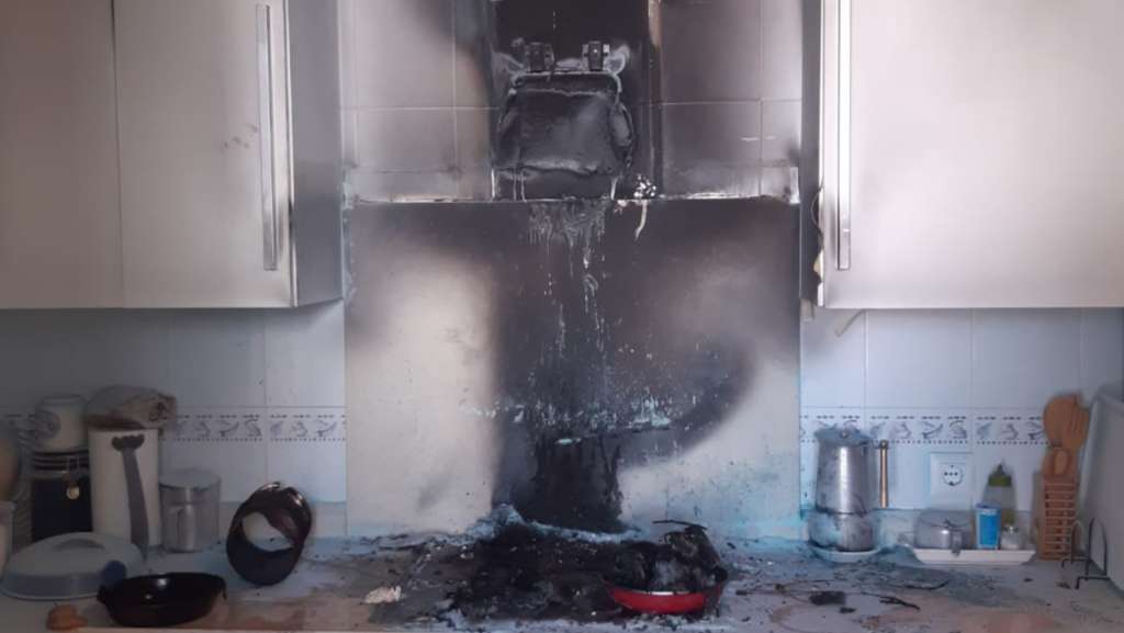 Los bomberos sofocan en incendio dw una cocina en una vivienda en la calle Rondeñas de San Fernando.