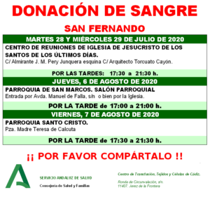 Para obtener información de dónde y cuándo se puede donar sangre puede entrar en la web de la Junta de Andalucía.