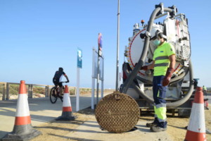 Por si eso fuera poco, de la mano de Hidralia, la empresa concesionaria del servicio de agua potable y alcantarillado, se está llevando a cabo durante todo el verano el vaciado de las fosas sépticas de la playa de Camposoto, una labor que realiza durante todos los días en la temporada de playa, con el fin de garantizar el buen funcionamiento de los servicios que se encuentran en los accesos, así como de los establecimientos de la zona.